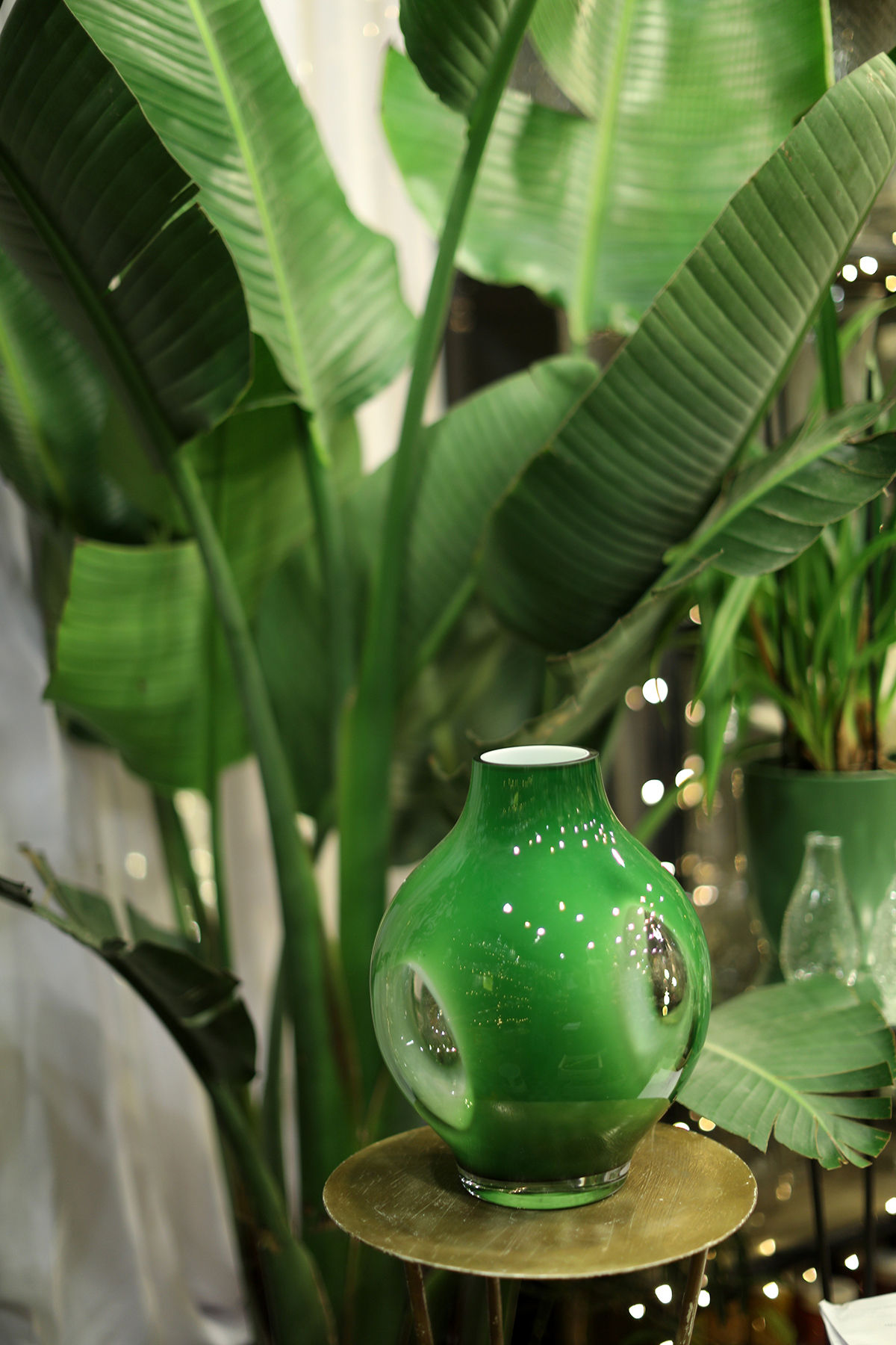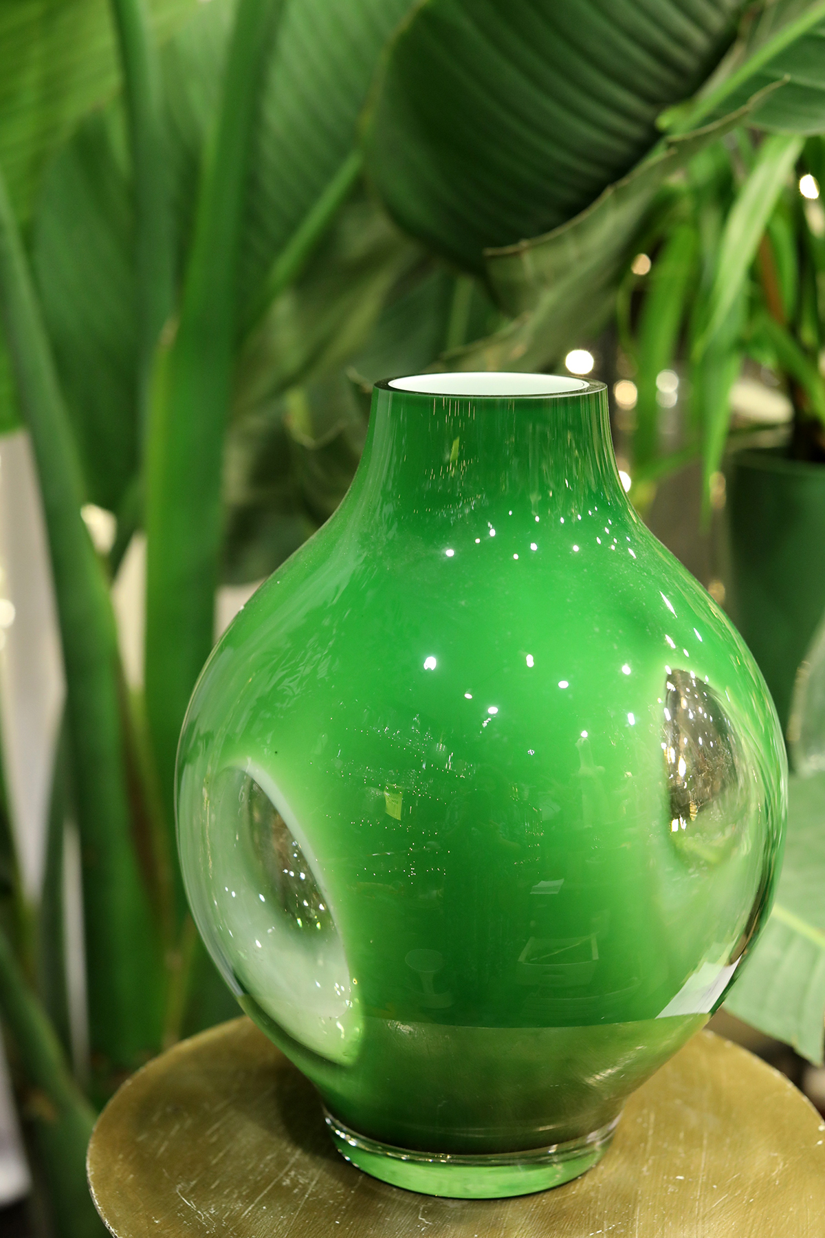 Zaļa vāze – ar baltu un Caurspīdīgu akcentu.